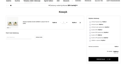 Dostanete se na novou záložku, kde najdete informace o produktech v košíku. Na pravé straně je seznam dostupných způsobů doručení - kliknutím na způsob doručení si musíte vybrat ten, který vám nejvíce vyhovuje.