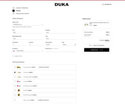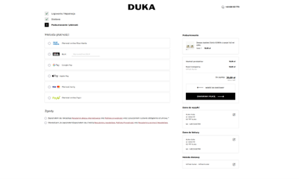 U DUKA si můžete vybrat mezi rychlými online platbami (PayU), mobilními platbami (Google Pay a Apple Pay), platbami kartou nebo dobírkou.
